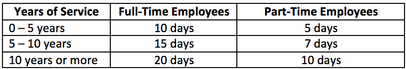 Listed below is a chart that illustrates the amount of vacation employees will earn based on years of service. Vacation is calculated from January 1st through December 31st, as follows: